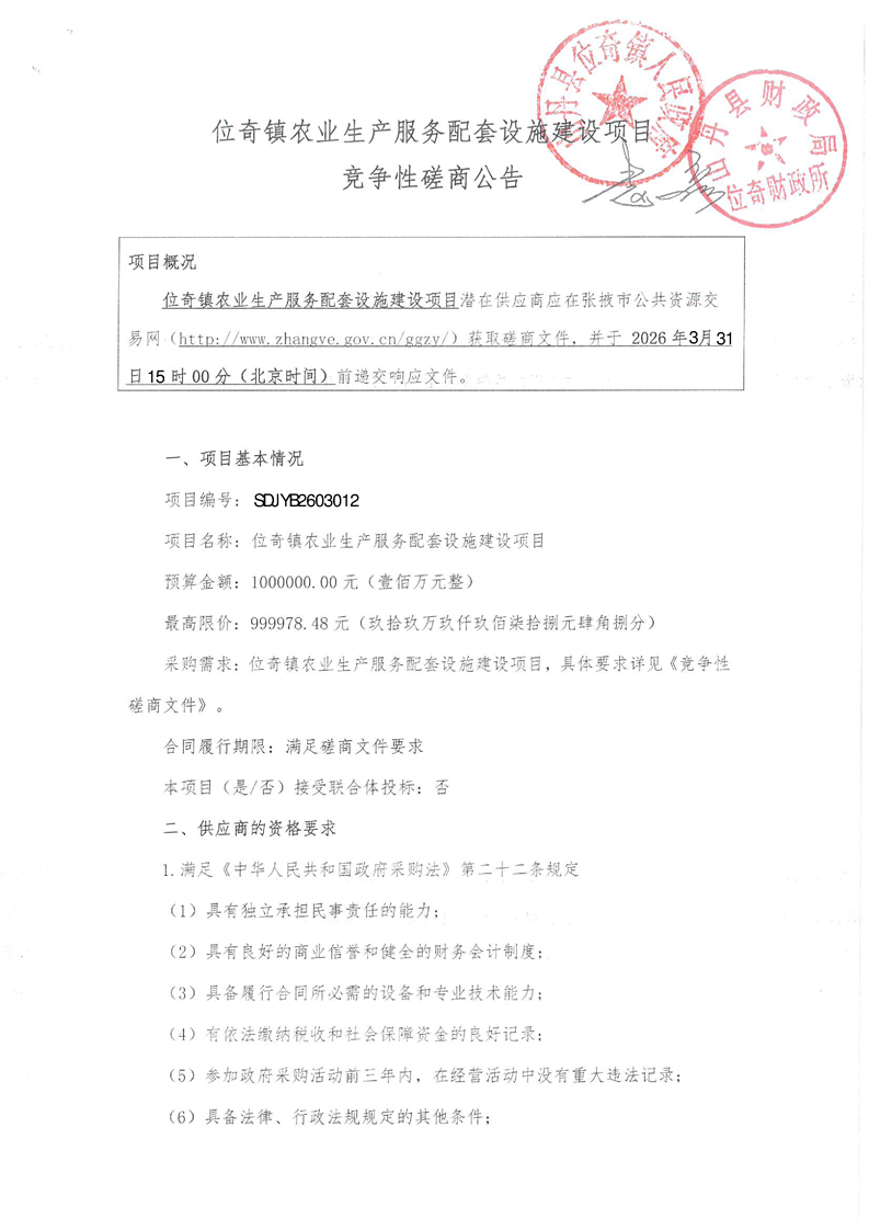 位奇镇农业生产服务配套设施建设项目竞争性磋商公告